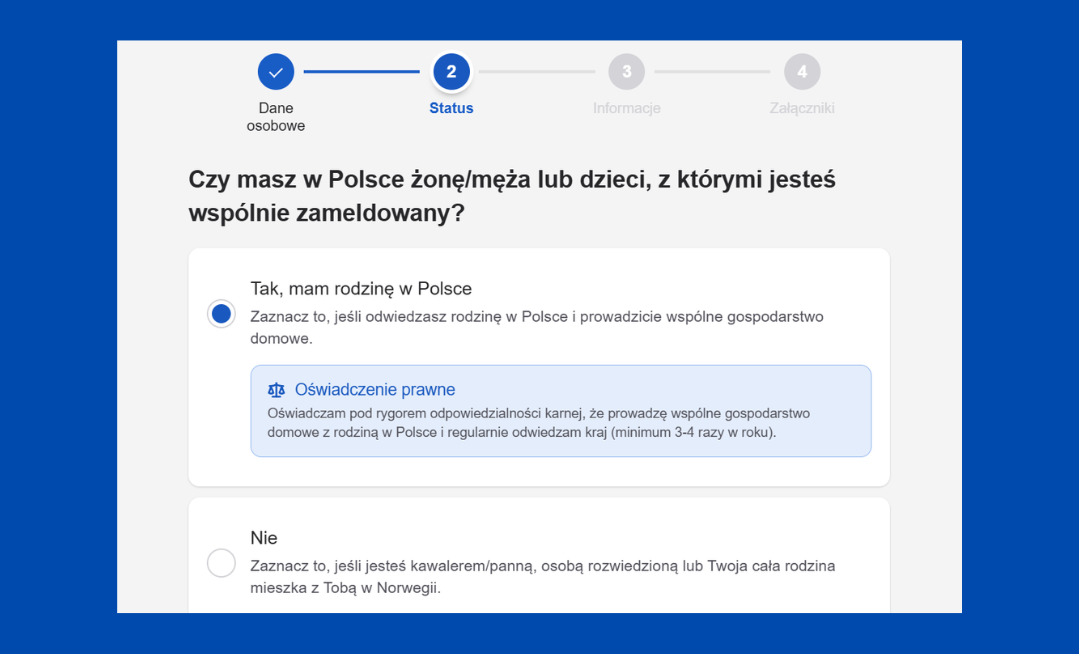 - Wypełniasz po polsku: proste pytania zamiast urzędniczego żargonu.