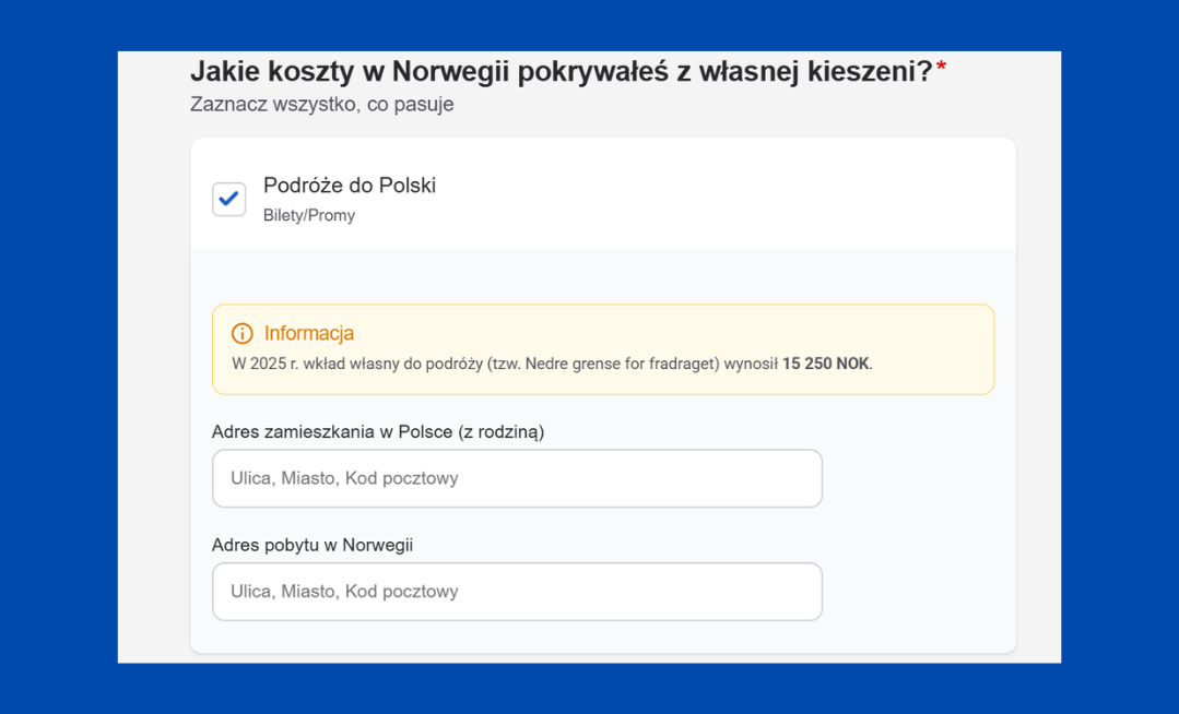 Nasz nowy formularz to system, który „prowadzi Cię za rękę”. Nie musisz już zastanawiać się, jakie dokumenty są potrzebne do statusu pendlera czy odliczenia kosztów bramek (bompenger).